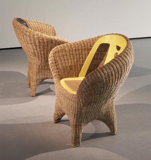 evolution of their ‘transplastic’ series, which uses found objects embedded in wicker. the exhibit will be